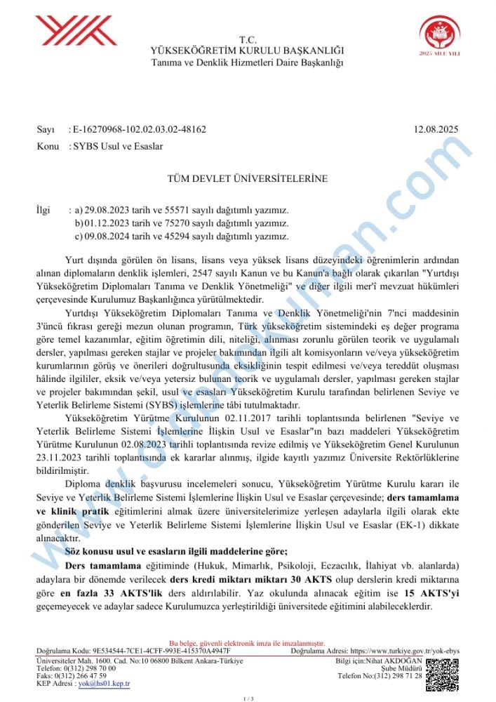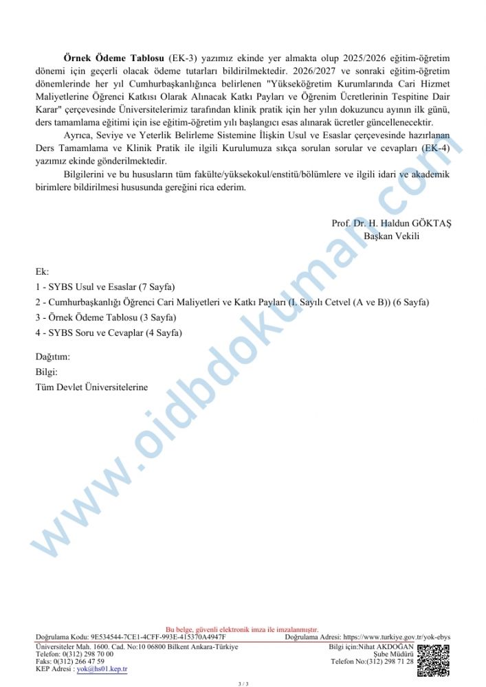 YÖK - KYK - ÖSYM - MEB Yazışmaları