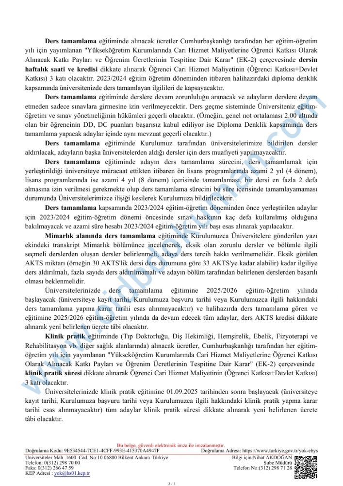ÖZEL ÖĞRENCİLİK SÜRE UZATMA İŞLEMLERİ-29.09.2025