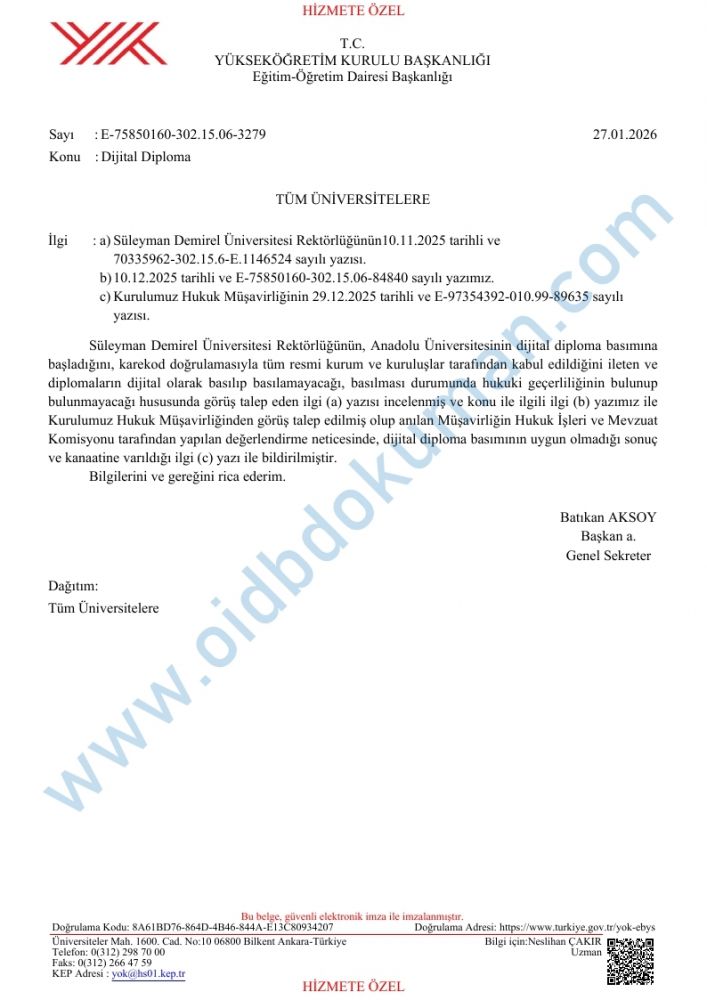 YÖK - KYK - ÖSYM - MEB Yazışmaları