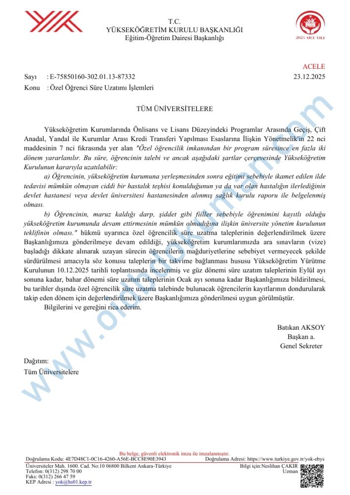 ÖZEL ÖĞRENCİLİK SÜRE UZATMA İŞLEMLERİ-23.12.2025