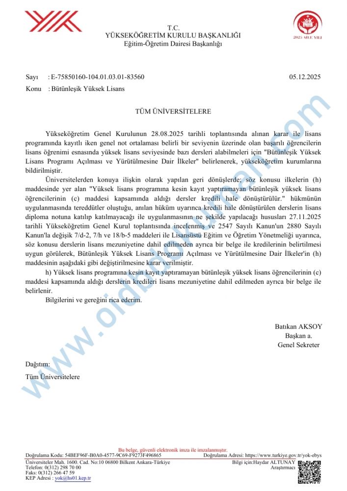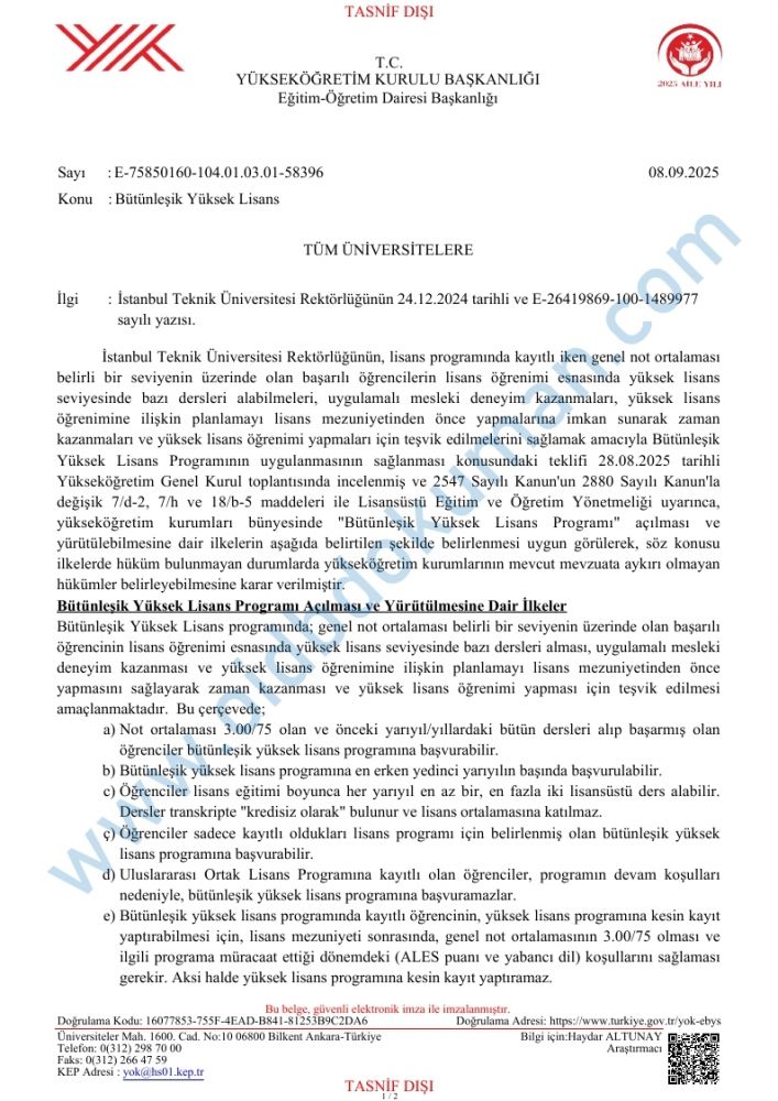 BÜTÜNLEŞİK YÜKSEK LİSANS-08.09.2025-08.12.2025
